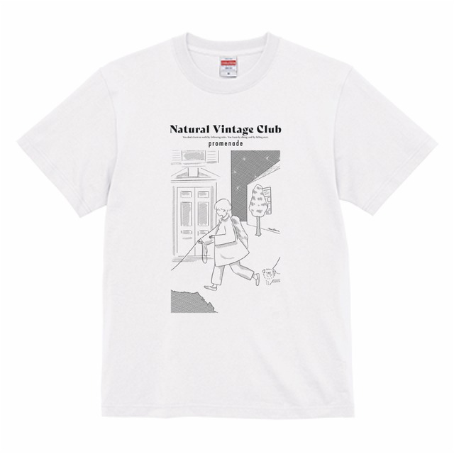 natural vintage club Tシャツ「おさんぽしよう」ホワイト